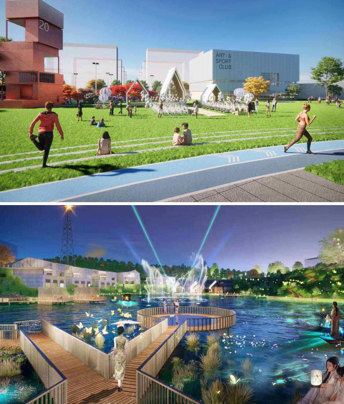 “第1眼·运动婚庆园”位于沙坪坝区经纬大道,地处沙坪坝、渝中、九龙坡三区交界处,占地面积约13万平方米。项目建设内容包括室外标准篮球场、室内篮球场、五人制足球场等体育设施,漂浮廊道、休闲广场等场地,还有湖边小苑、婚恋俱乐部等建筑群。