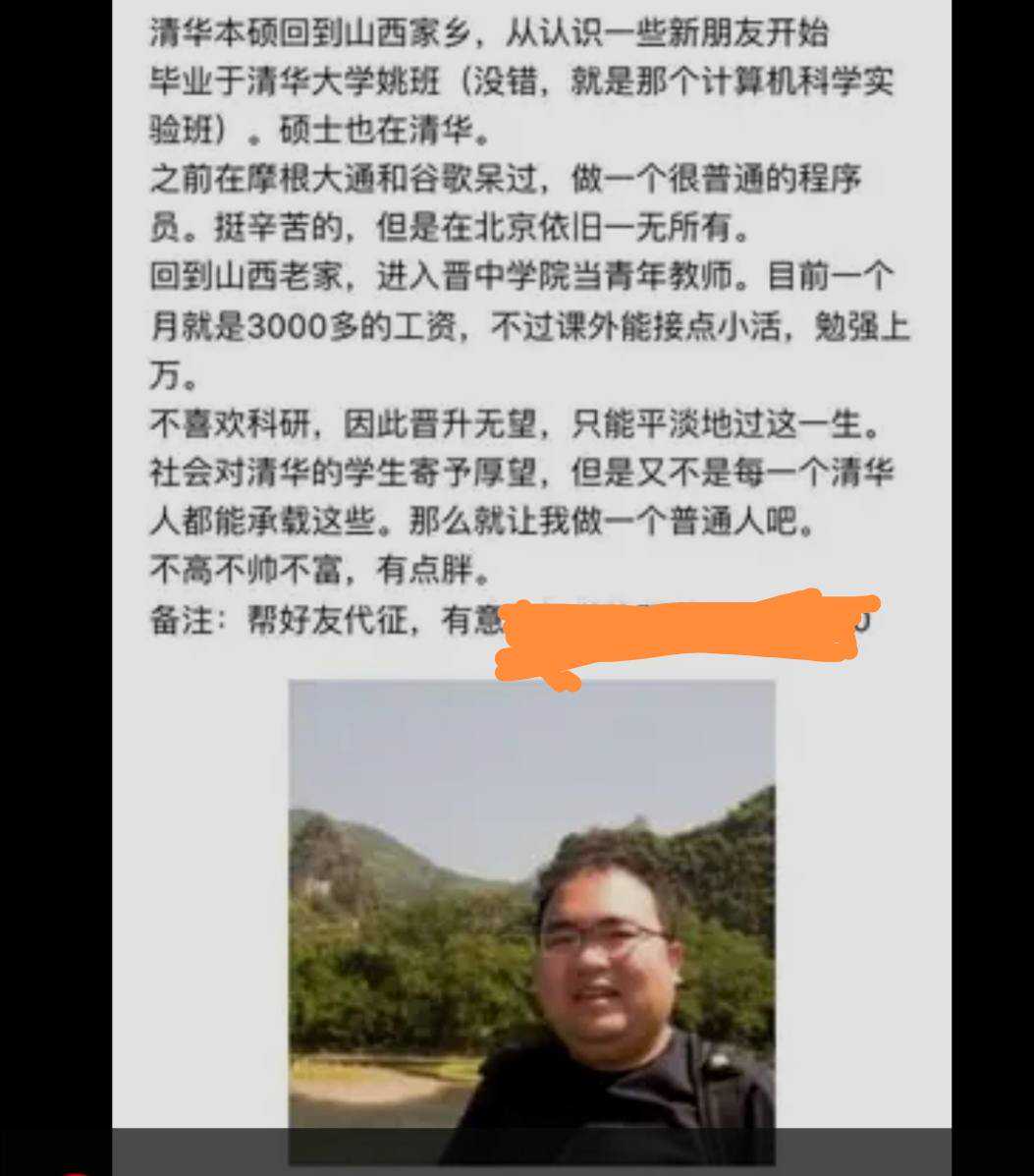 征婚人,是那个一直没有邂逅爱情的清华姚班毕业生。