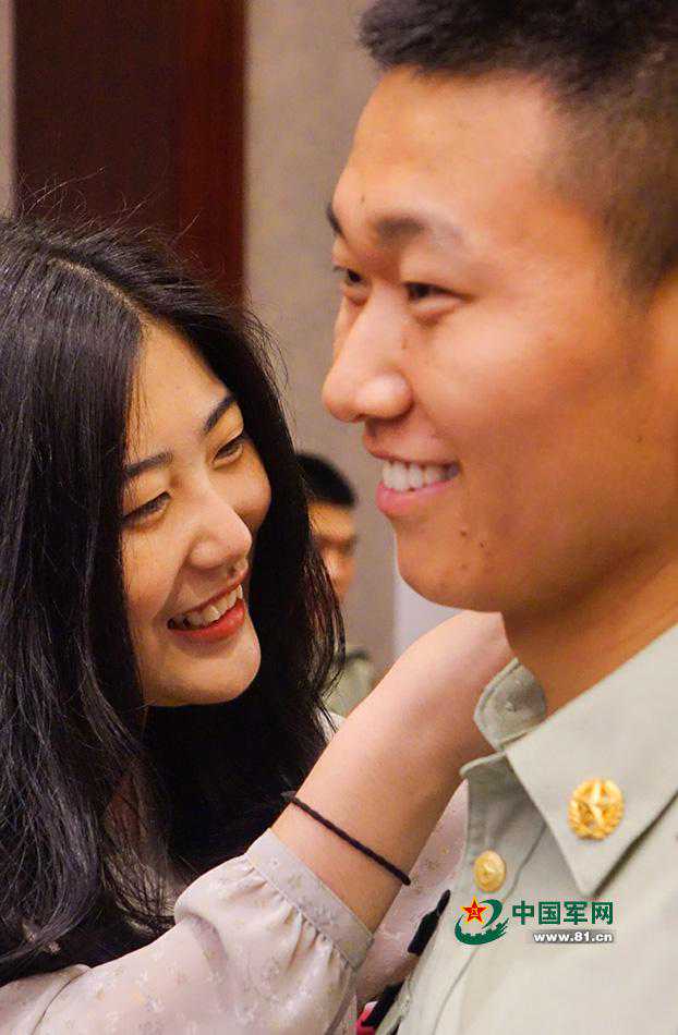 女嘉宾近距离接触到军人,脸上洋溢着幸福。