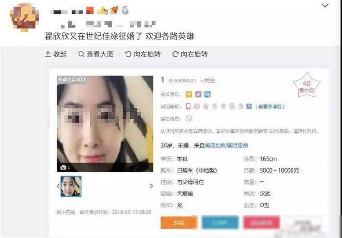 翟欣欣第5次公开征婚?婚恋平台不能成为罪恶的温床