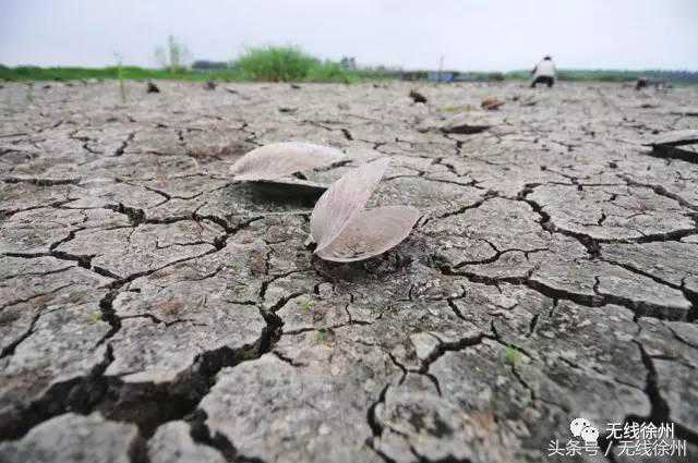 淮河流域裸露的河床上因干旱而死去的河蚌。