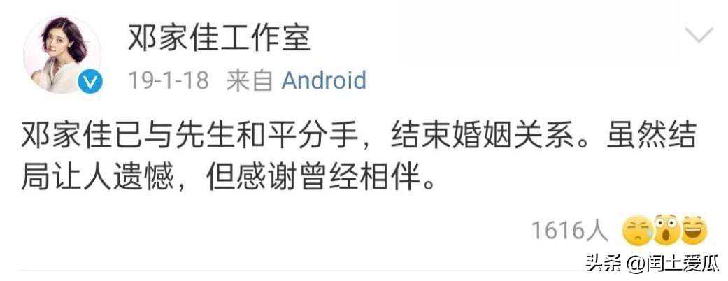 对于离婚原因邓家佳并没有说明,之后她再也没有提及自己的婚姻和前夫。邓家佳和于岩相恋十四年,为了保护这段感情,邓家佳从未分享过于岩的照片,就连婚纱照也选择了背影和侧脸来分享。