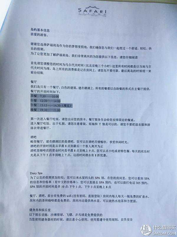 被超瘦的小哥领去前台办理入住,我们是先水屋再沙屋,岛上房间有限,安排啥就是啥吧。然后发一些说明,以及告知出海浮潜及海钓时间,以及想玩水上项目在哪里等等注意事项。