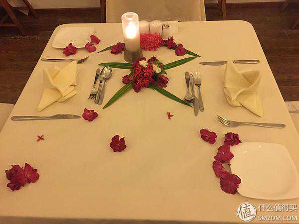 (蜜月餐可以选择在餐厅或者沙滩上烛光晚餐那种,我们心想着大晚上,沙滩上黑灯瞎火的,还有蚊虫,果断餐厅啊~这想法,也是暴露了结婚多年吧):