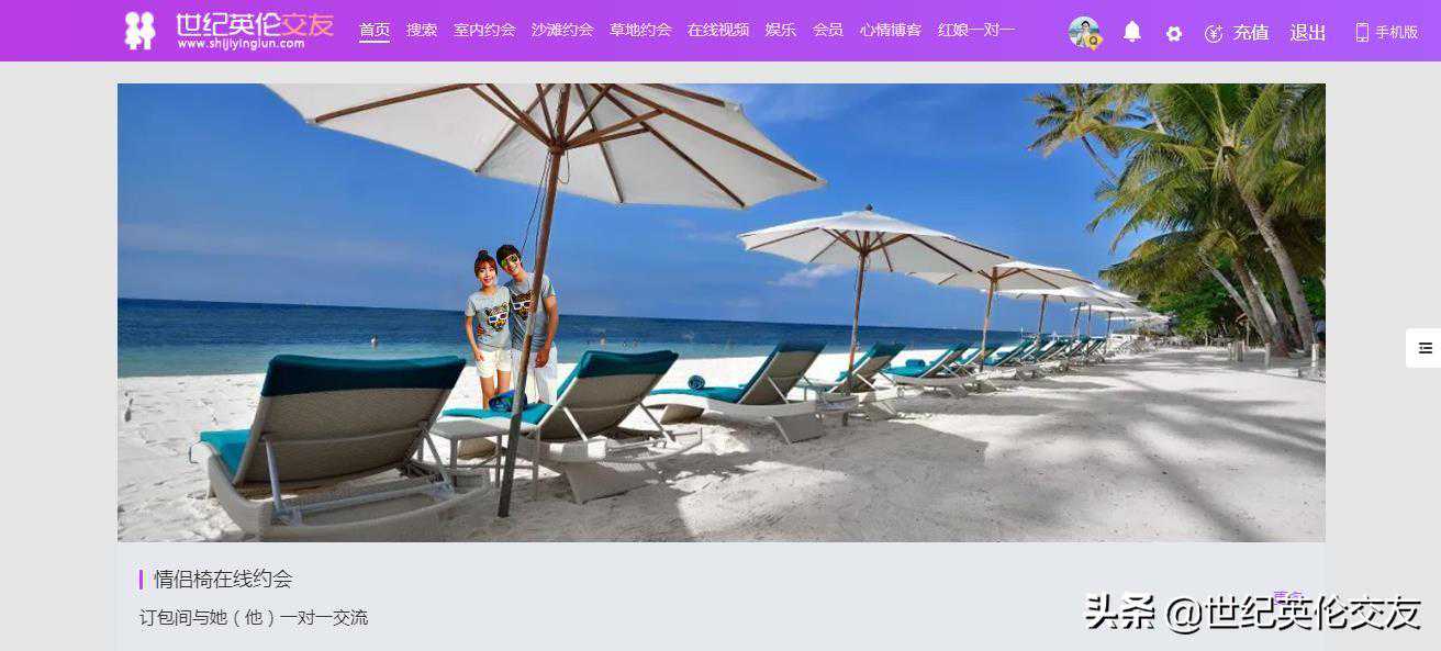 网站场景聊天交友是指交友网站内添加有等同实地的聊天场景。世纪英伦婚恋网站是国内第一个应用聊天场景的婚恋交友平台,该平台借助强大的应用功能,并配有室内和户外聊天场景模式,用户在聊天交友过程中可感受等同实景的聊天交友气氛。世纪英伦婚恋网站内置等同实景的室内包间、户外沙滩及户外草地。