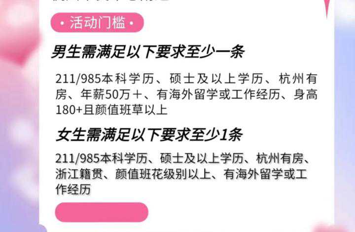 一位27岁的萧山女孩,登记的择偶标准里写道:“本人身高1.65米,温柔漂亮,本科学历,企业管理,觅本省内,一本学历,最好是体制内工作,年龄大二三岁之内,身高1.75米以上,阳光男生。”