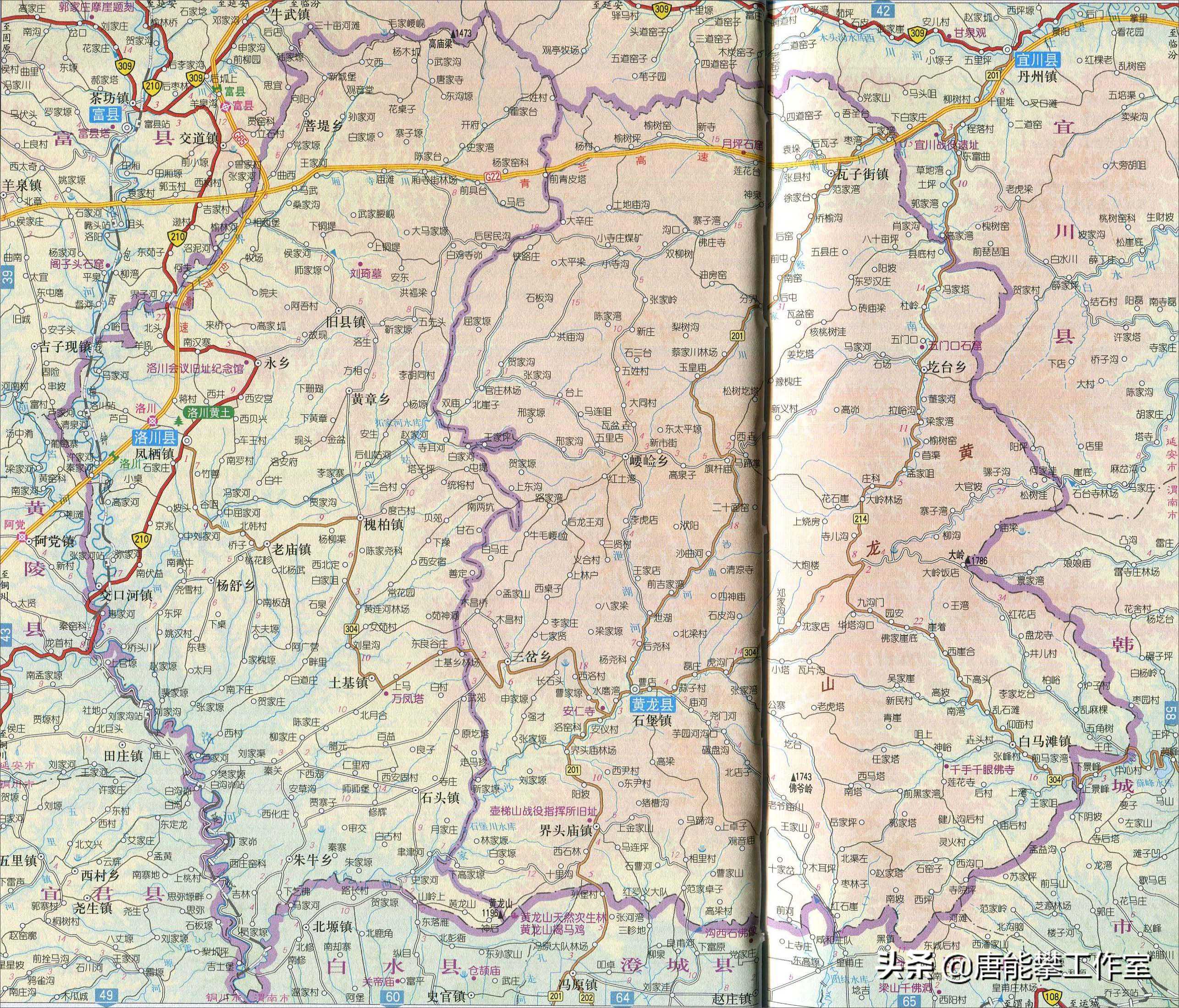洛川县、黄龙县乡镇地图