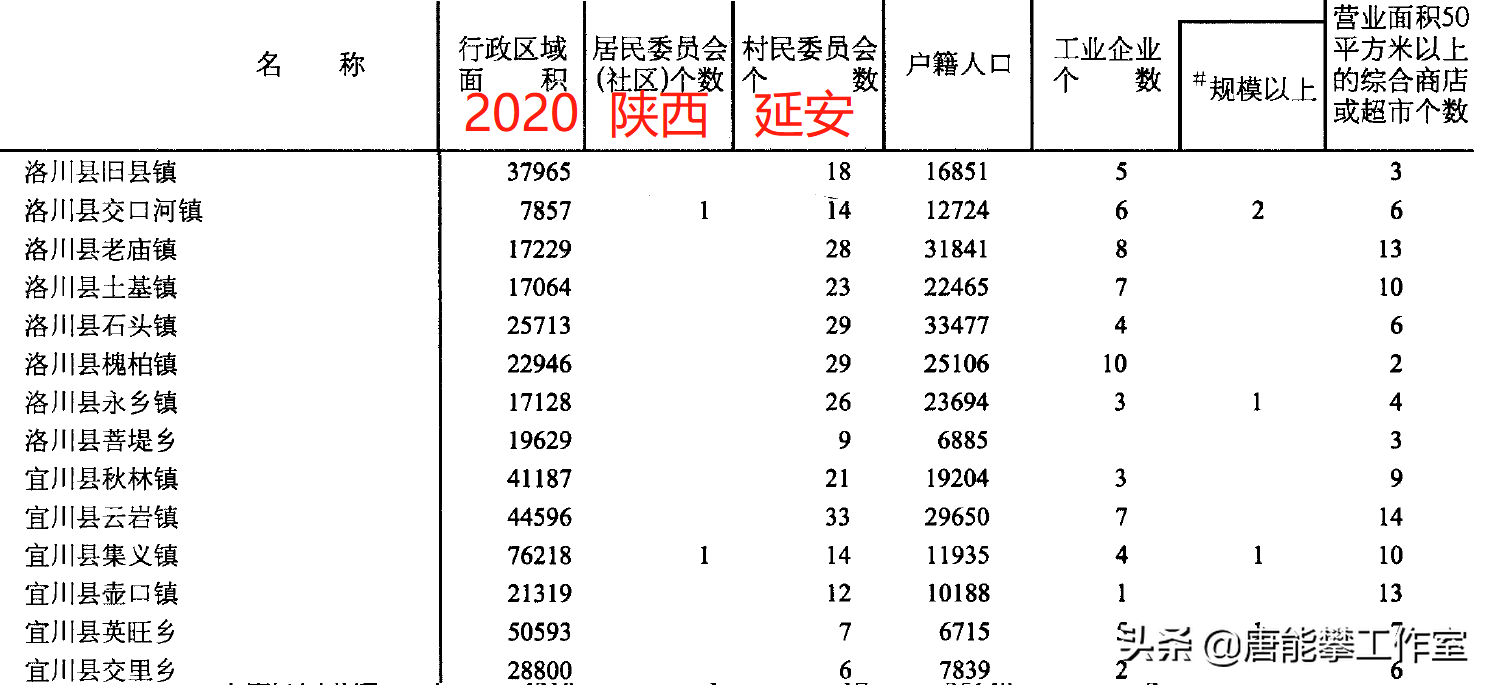 延安宝塔区13镇、安塞区8镇的变迁:人口、土地、工业…统计分析