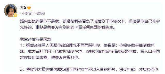这场明星夫妻的情感角力仿佛一场无情的较量,指责与反驳在其中交织,让人眼花缭乱。大S毫不留情地指责汪小菲家暴,并声称曾向他借出高达1.7亿的巨额资金。而汪小菲则在他的反驳中试图辩解这些指责,声称受到了不公正的对待,还辩称之前的借款是双方协商达成的结果。这样的情感交锋让人触目惊心,也揭示了婚姻中存在的复杂纠葛。