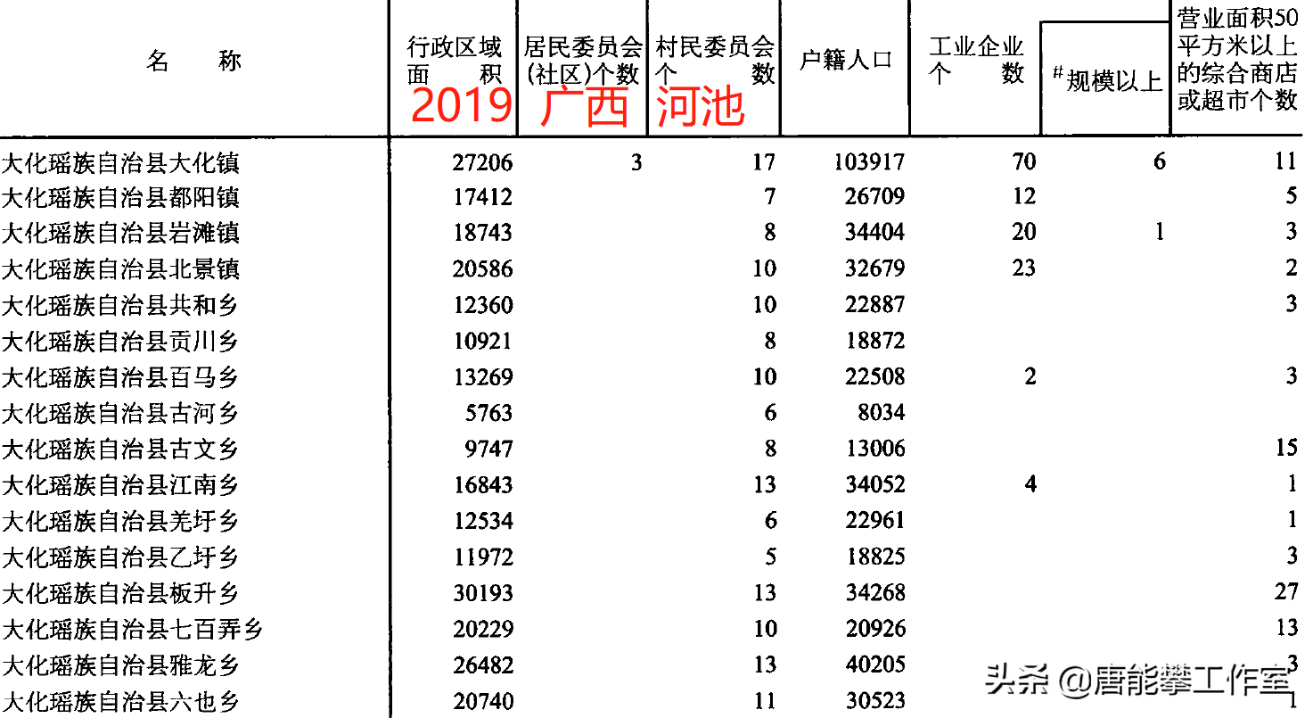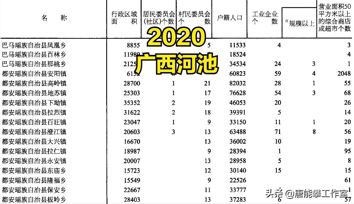 河池环江12镇、罗城11镇的变迁:人口、土地、工业…基本统计