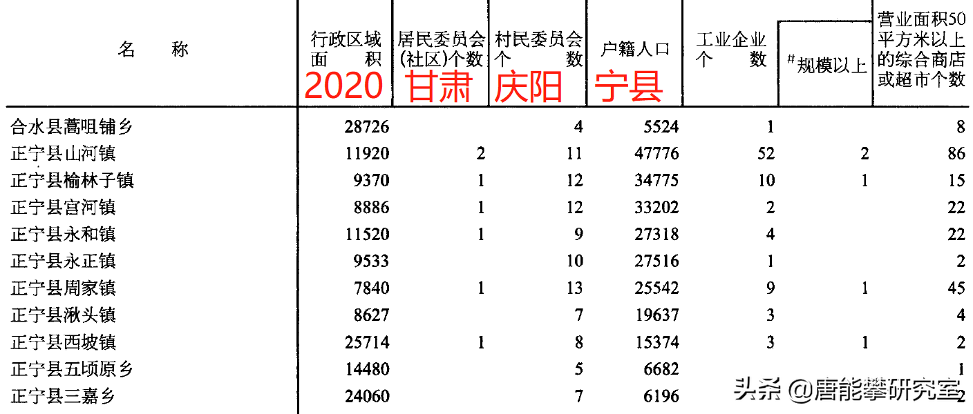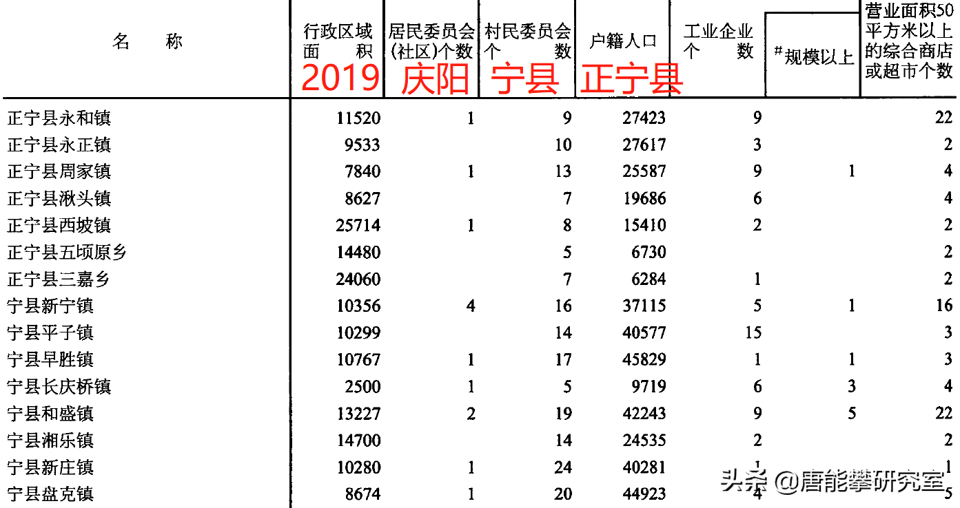 庆阳西峰、庆城、镇原41乡镇人口、土地、工业…最新统计