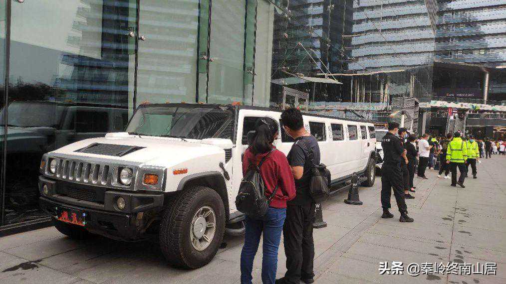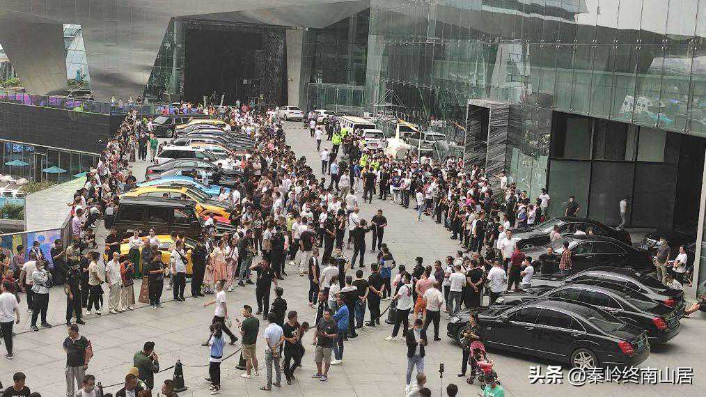现场大量人员聚集,大量豪车聚集,听别人介绍都是网红明星的豪车,很多都是全球限量版,最贵的2000多万,甚至直升机都飞来了,甚至还有黄圣依老公扬子的加长座驾,不知道从什么时候起扬子也加入了网红的行列,这么多网红豪车云集,现场堪比豪车展,看来是集体炫富啊,每辆车都用网红的名字遮挡着车牌,生怕别人不知道是谁的车,只是不知道如此遮挡车牌,在西安算不算违法呢?