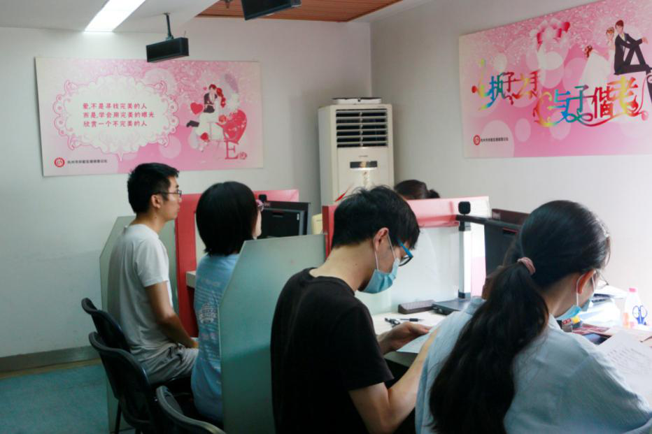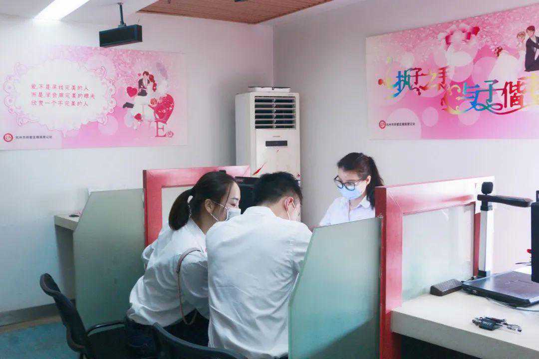 拱墅区婚姻登记处七夕共网上预约42对,预约名额比平时多了12对,但也早早被准新人们预约完了。为迎接七夕领证高峰,让新人们有更好的结婚登记体验,拱墅区婚姻登记处做了相应的应急预案,增派人手维护现场秩序,避免人群聚集,减少新人排队等候时间。同时,还邀请到拱墅区社会组织“有晴天婚姻家庭辅导中心”为新人们婚前心理咨询服务。