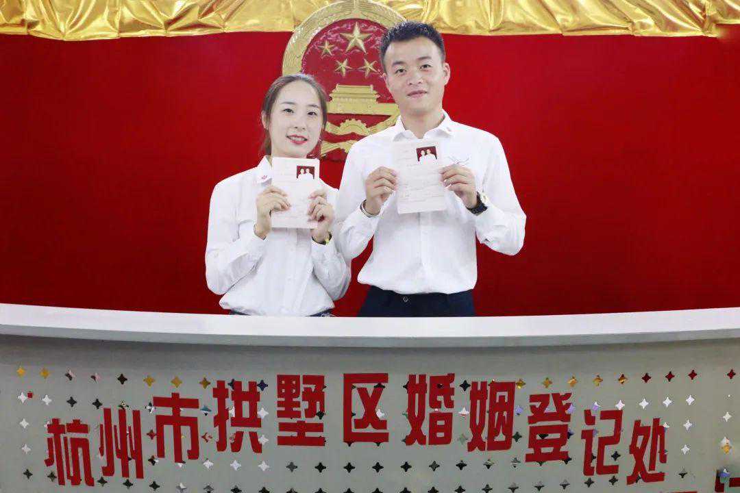 “我们之前就是同学,从认识到相恋,大学他在青岛,我在安徽。后来他在杭州我在金华,我们这些年有厚厚的一把车票。他有上进心也很踏实,虽然是异地恋但我们彼此还是坚持下来。我们本来是准备9月28日领证,今天是七夕,也是突然决定来领证。我们很注重仪式感,接下来还有更多的日子在一起,我们一定会幸福的。”程小姐开心地说。