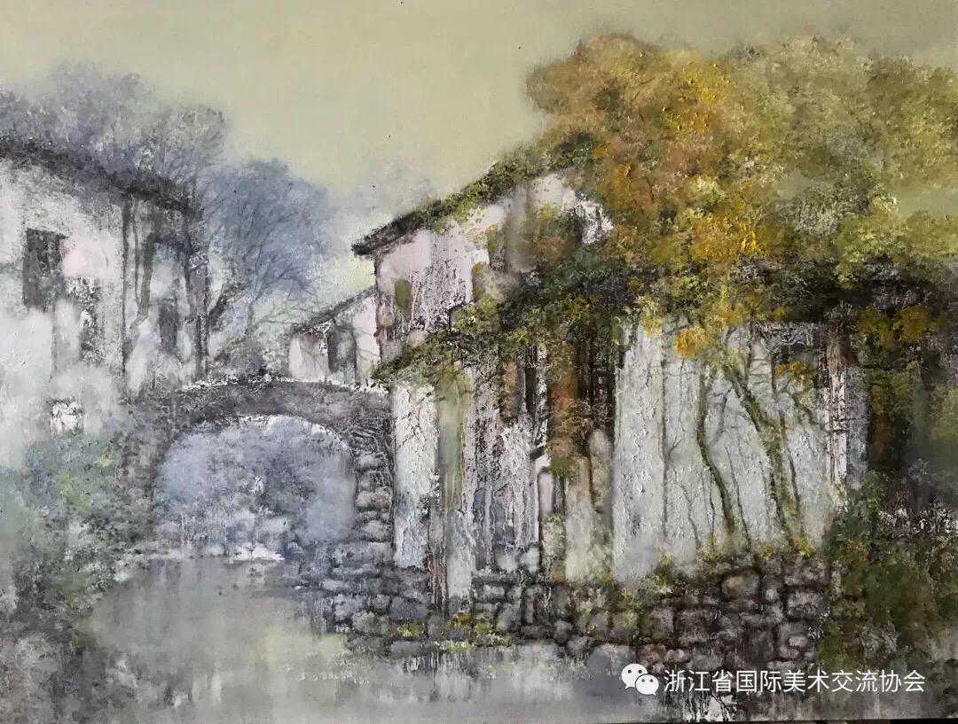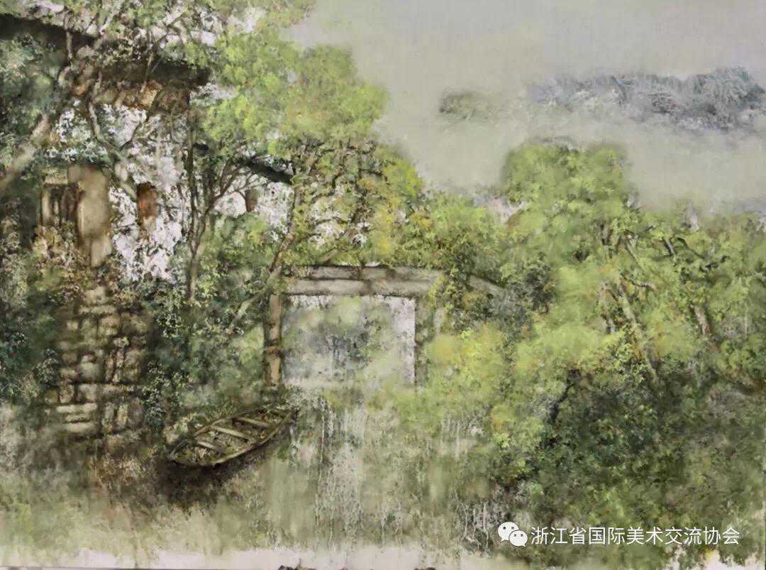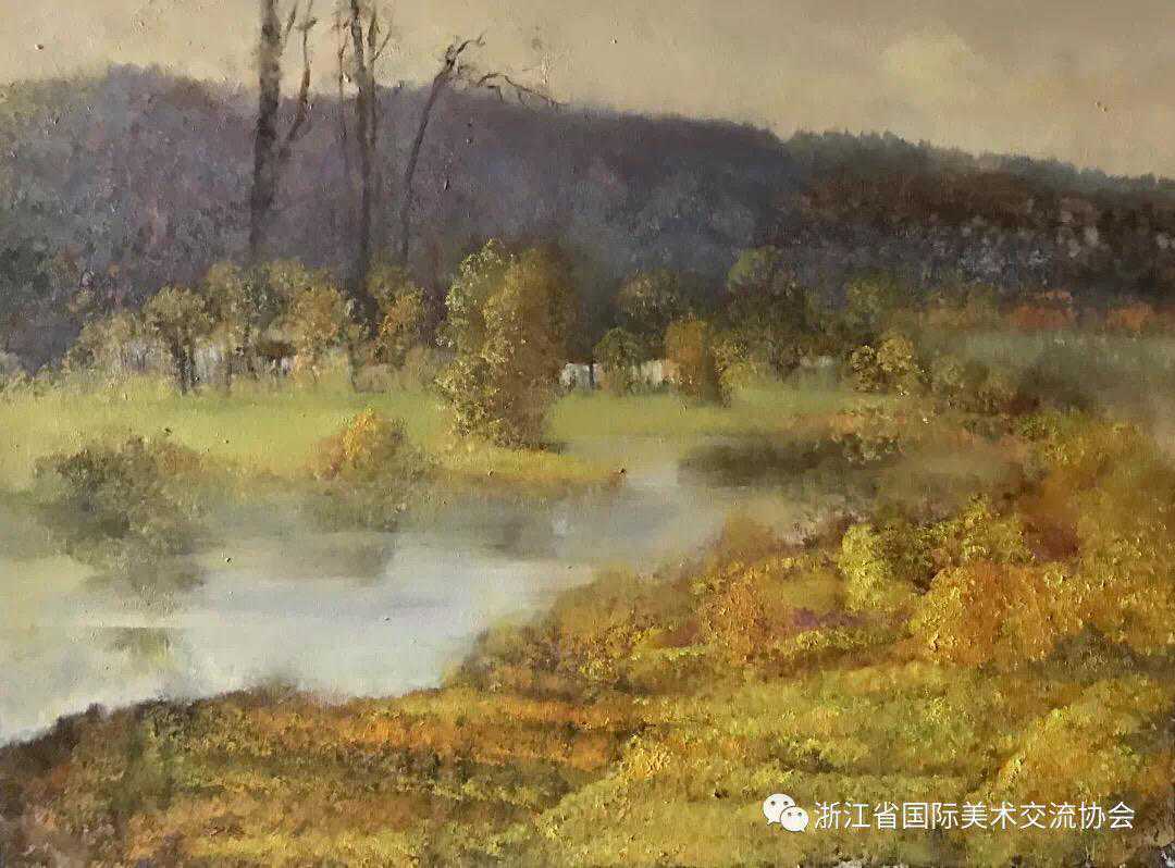 不难看出他天天处于兴奋状态,动情地在光、色与空气的空间之中作画。从笔触与色块中看到他作画间自觉与不自觉地进入了一种唯美的、主观的思想境地。他的作品让读画者品味到一丝隐约的象征主义意味,也透露出一点淡淡的神话意趣。文杰先生的绘画如同其人,灵敏聪慧、才识卓异,同时也善感多情。通过他的作品我们可读懂陶文杰先生的修养与品格。