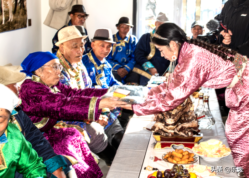 儿子接亲前向养育一生的父母敬献马奶酒。
