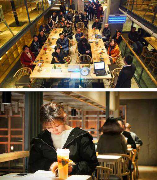 宽敞明亮的温暖室内,花卉搭伴,面对面近距离地交谈,当然手中握着一杯适合年轻人的时尚茶饮。