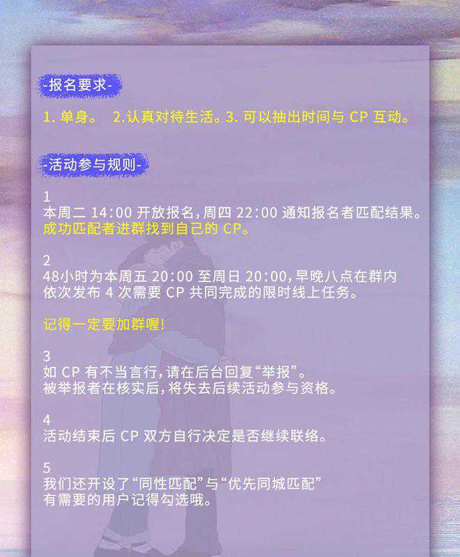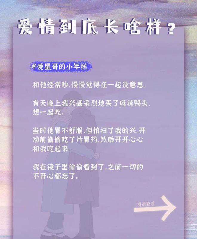 这种恋爱是谁在谈啊?甜死了|48小时CP,最近和几位母胎solo20多年的朋友聊了聊,我发现他们对爱情的概念宏观又模糊:要么取材于小说,爱情惊天动地可歌可泣;要么来自现实生活,爱情势均力敌门当户对。一边憧憬着童话般的爱情,一边又觉得没有物质的爱情就像一盘散沙。但爱情具体到生活里,到底长啥样?他们不知道。于是我找了一些恋爱中的读者,和他们聊了聊:爱情到底长啥样?看完你会发现,爱情其实没有标准答案。它是每个人在这段关系里的主观感受,需要自己去探索。我们一生会遇到8263563个人,只有不断尝试遇见,才有可能找到想要的爱情。从现在起至9月21日晚上19:00,报名这期48小时CP,找到和你契合的那个TA,给遇见爱情一个机会。现在,就进入“新世相”微信公众号,在后台回复关键词【48小时】,即可匹配你的专属【恋爱实习对象】。匹配成功后,加入社群,添加CP,完成任务,开启一场48小时的恋爱实习之旅。[爱心]
