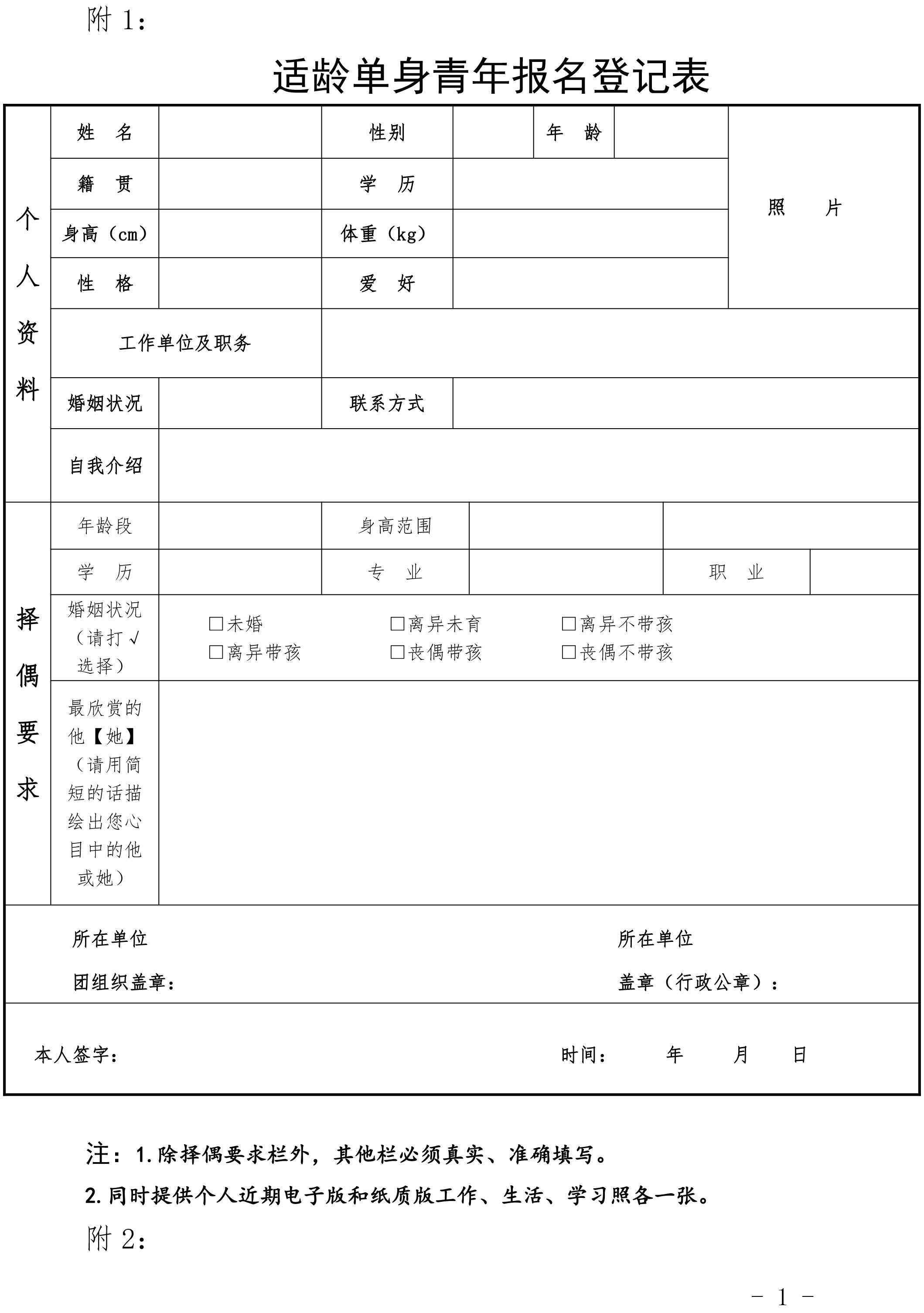 1.除择偶要求栏外,其他栏必须真实、准确填写。