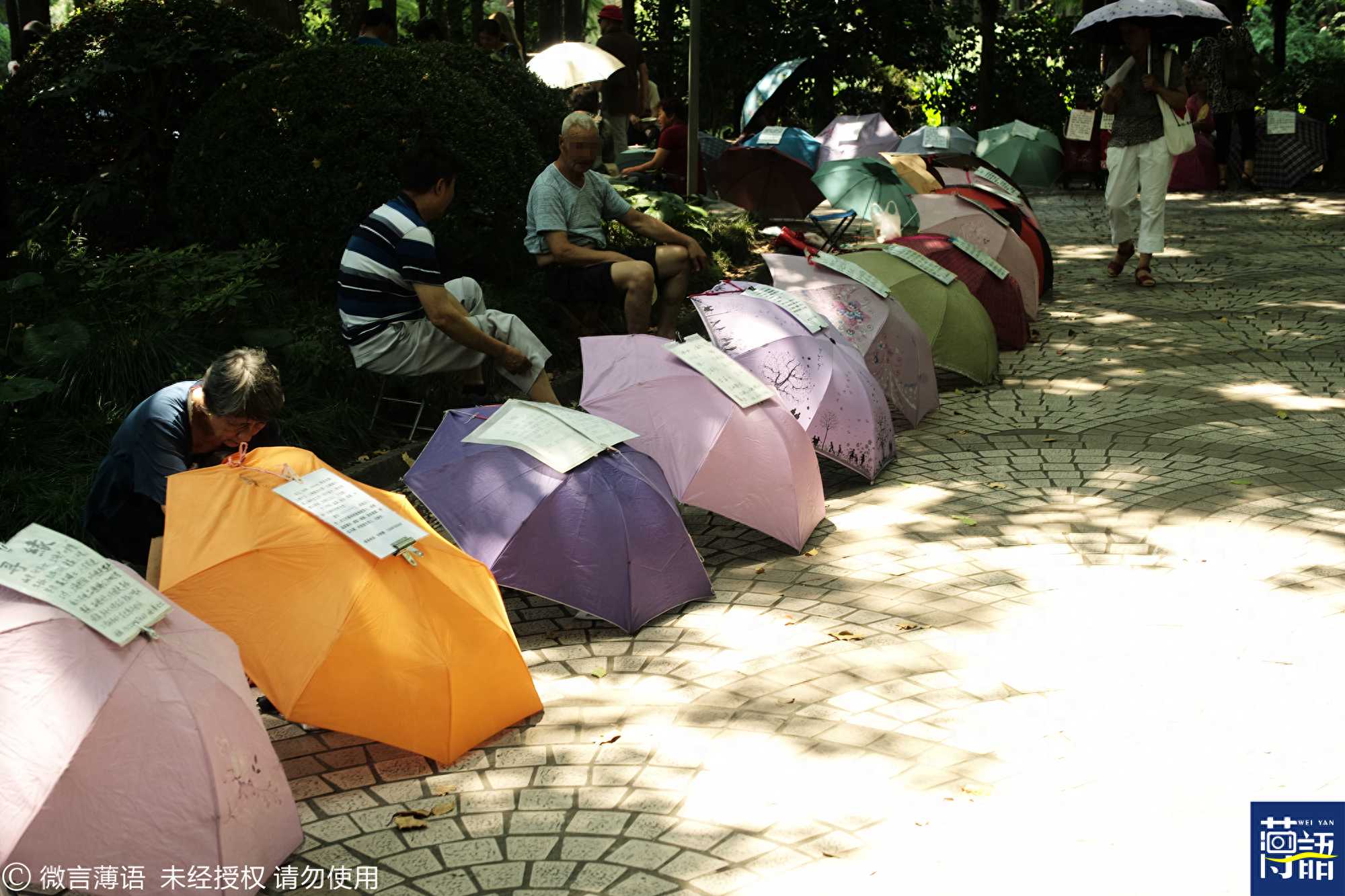 30多度的高温下,相亲角的大爷大妈为了子女的婚姻大事也是拼了。