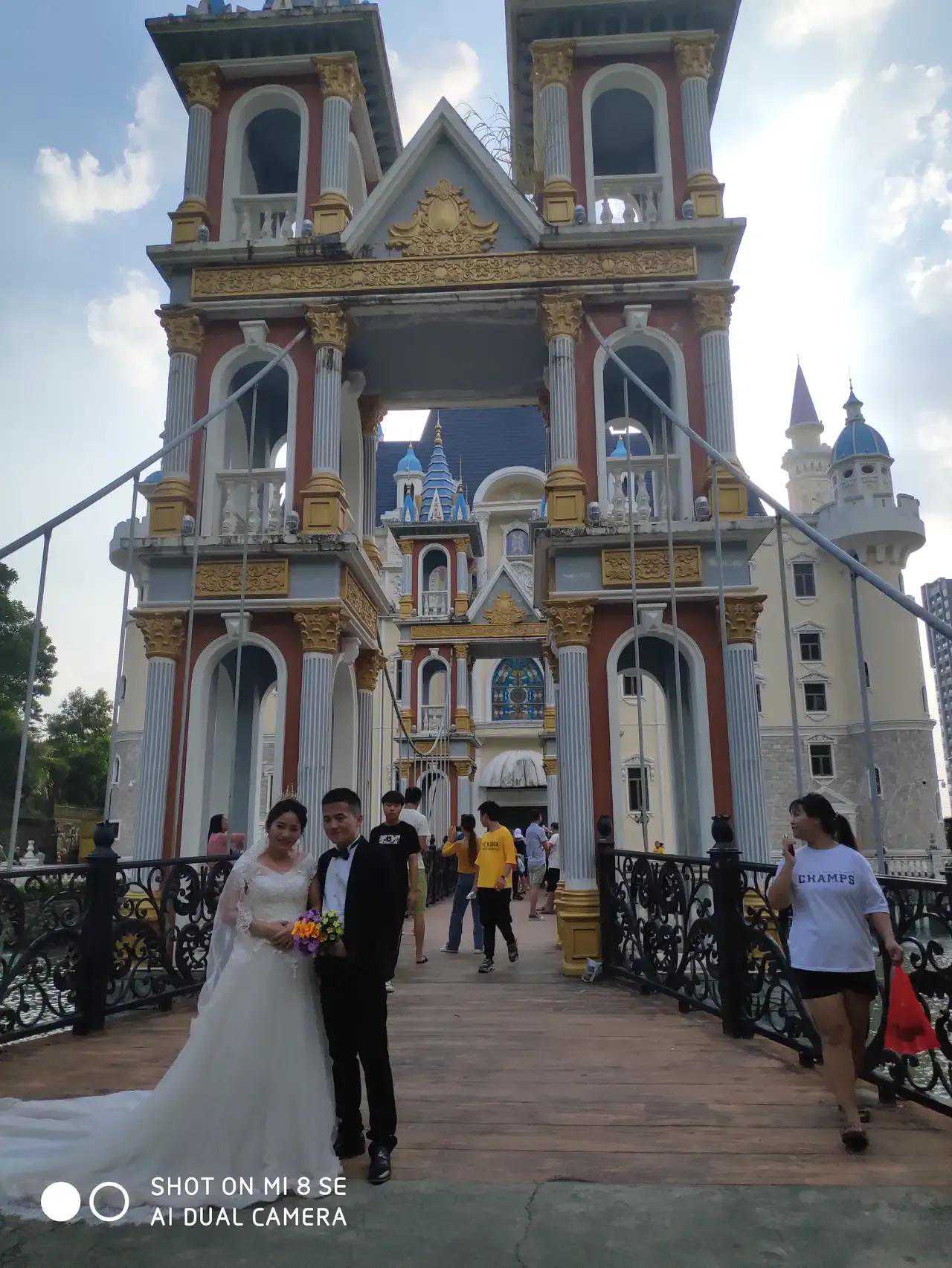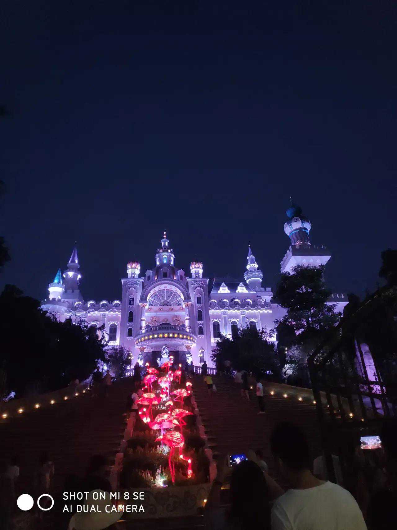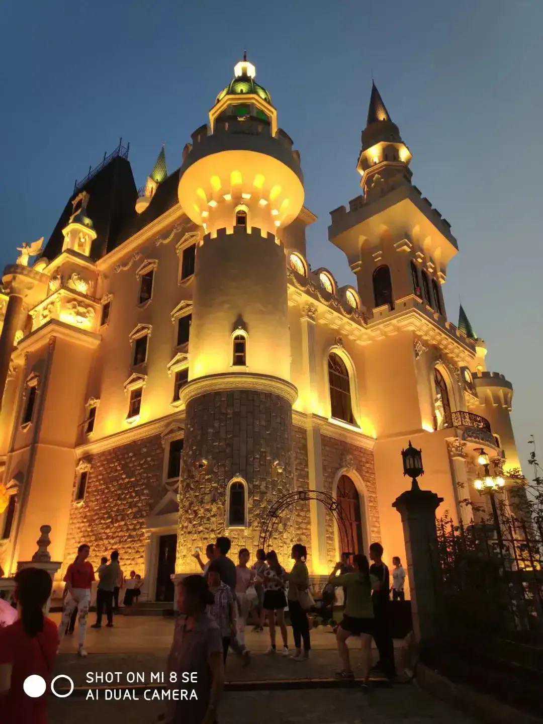 一进到大门一座巨大的城堡就出现在眼前,等到晚上的时候加上灯光的衬托,就真的像生活在童话的世界里。很适合拍婚纱照,因此也叫婚庆主题景区,很多年轻人选择在这里拍婚纱照。