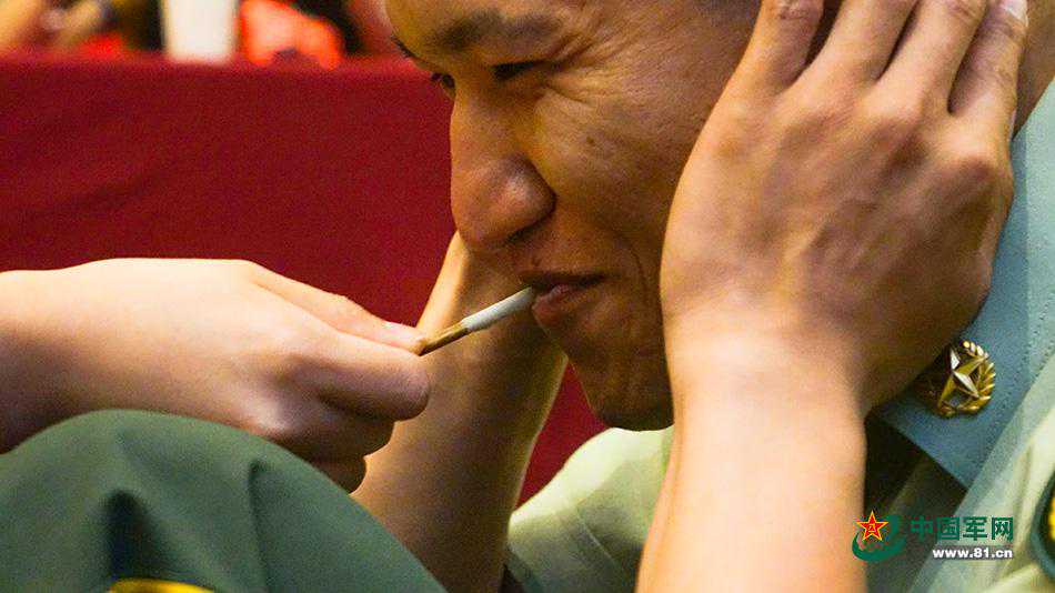 女嘉宾近距离接触到军人,脸上洋溢着幸福。